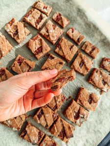 This version of the traditional Linzer Schnitten is more nutritious, naturally sweetened and contains no grain flour whatsoever. It is also vegan, blood sugar-friendly, anti-inflammatory and hormone-friendly! The base consists of freshly ground nuts, which gives the dough a particularly aromatic profile and a finer texture. Alternatively, you can use pre-ground nuts. However, freshly ground nuts add more moisture and flavour.